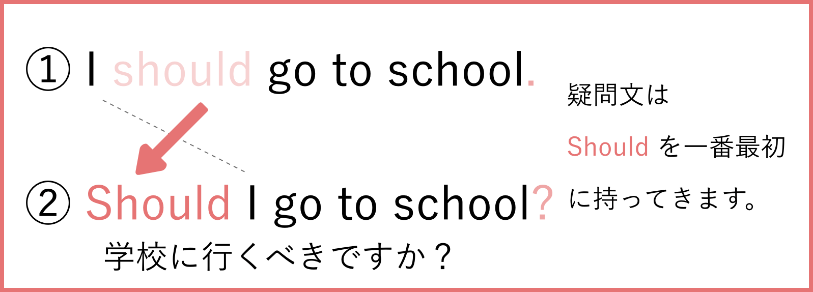 「〜するべきですか?」と相手にたずねる場合はshouldを一番前にもってきましょう。